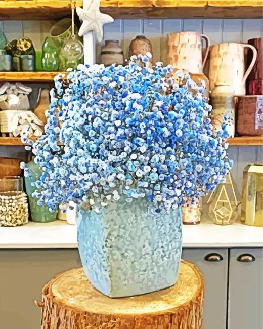 Blue Baby Breath Bouquet In A Vase Diamond Painting