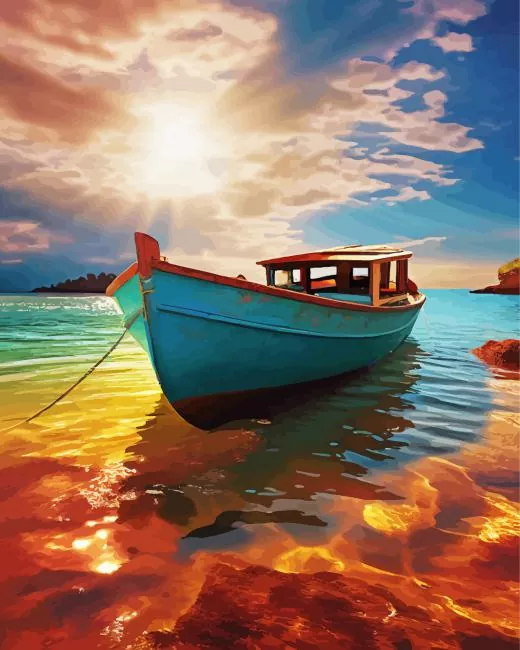 Blue Boat Diamond Painting