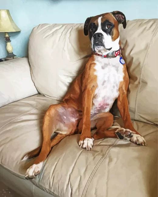 Boxer Dog Sitting On Couch Diamond Painting