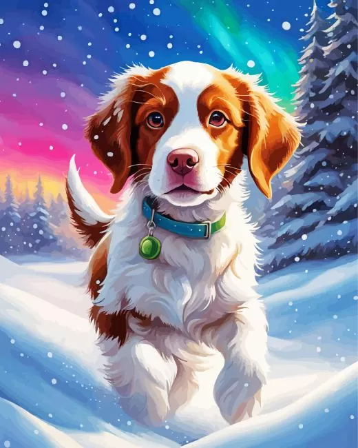 Brittany Spaniel Puppy In Snow Diamond Painting