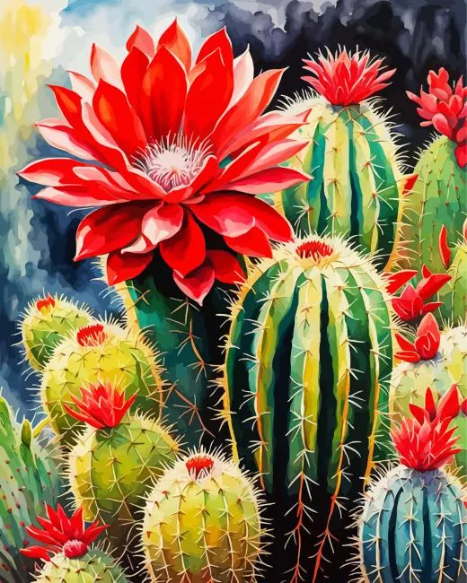 Cactus Red Flower Diamond Painting