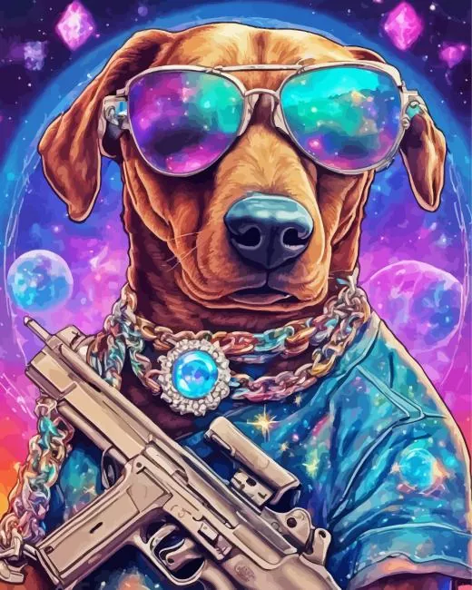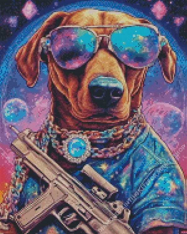 Dog And Glasses Diamond Painting