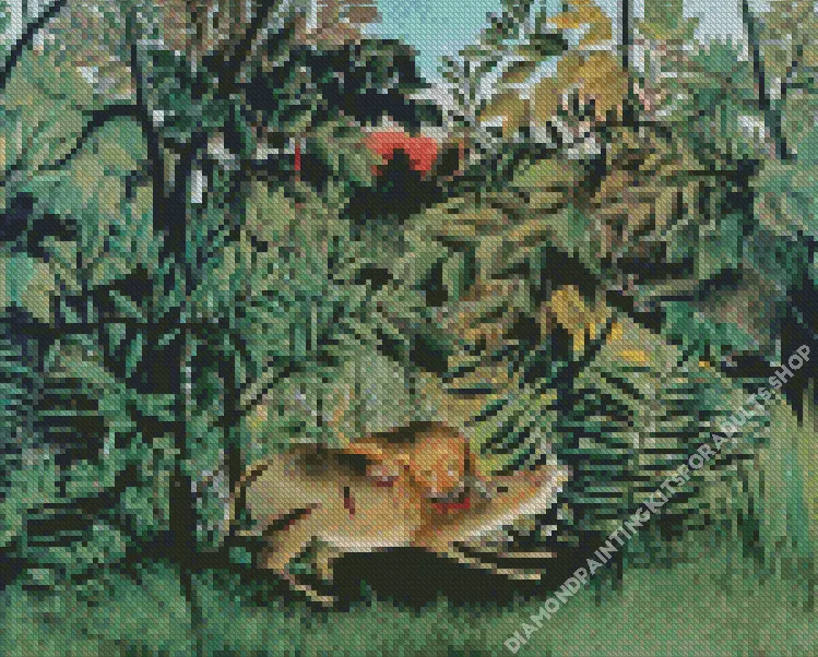 Immerse yourself in the mesmerizing charm of Henri Rousseau The Hungry Lion Diamond Painting and unlock your creative potential with our remarkable assortment of kits. Our upgraded kits showcase finely printed, top-notch canvases that provide an ideal backdrop for showcasing your artistic abilities and infusing your home decor with an enchanting touch. With a splendid array of designs and shimmering beads, you can infuse vitality into your creations with exceptional precision and painstaking attention to detail. Additionally as you delicately position each diamond on the sticky canvas using our provided tools, you will experience the magical transformation of painting with diamond. This art form not only allows you to craft awe-inspiring masterpieces but also serves as a therapeutic and fulfilling activity that fosters mindfulness and a profound sense of achievement.