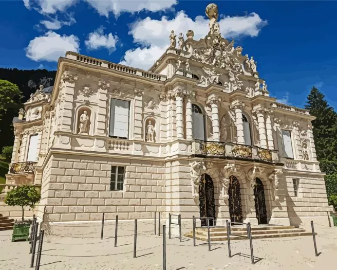 Immerse yourself in the mesmerizing charm of Linderhof Palace Germany Diamond Painting and unlock your creative potential with our remarkable assortment of kits. Our upgraded kits showcase finely printed, top-notch canvases that provide an ideal backdrop for showcasing your artistic abilities and infusing your home decor with an enchanting touch. With a splendid array of designs and shimmering beads, you can infuse vitality into your creations with exceptional precision and painstaking attention to detail. Additionally as you delicately position each diamond on the sticky canvas using our provided tools, you will experience the magical transformation of painting with diamond. This art form not only allows you to craft awe-inspiring masterpieces but also serves as a therapeutic and fulfilling activity that fosters mindfulness and a profound sense of achievement.