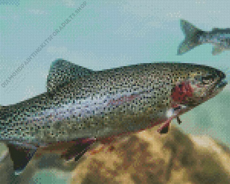 Immerse yourself in the mesmerizing charm of Rainbow Trout Fish Diamond Painting and unlock your creative potential with our remarkable assortment of kits. Our upgraded kits showcase finely printed, top-notch canvases that provide an ideal backdrop for showcasing your artistic abilities and infusing your home decor with an enchanting touch. With a splendid array of designs and shimmering beads, you can infuse vitality into your creations with exceptional precision and painstaking attention to detail. Additionally as you delicately position each diamond on the sticky canvas using our provided tools, you will experience the magical transformation of painting with diamond. This art form not only allows you to craft awe-inspiring masterpieces but also serves as a therapeutic and fulfilling activity that fosters mindfulness and a profound sense of achievement.