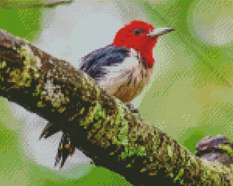Immerse yourself in the mesmerizing charm of Red Headed Woodpecker Diamond Painting and unlock your creative potential with our remarkable assortment of kits. Our upgraded kits showcase finely printed, top-notch canvases that provide an ideal backdrop for showcasing your artistic abilities and infusing your home decor with an enchanting touch. With a splendid array of designs and shimmering beads, you can infuse vitality into your creations with exceptional precision and painstaking attention to detail. Additionally as you delicately position each diamond on the sticky canvas using our provided tools, you will experience the magical transformation of painting with diamond. This art form not only allows you to craft awe-inspiring masterpieces but also serves as a therapeutic and fulfilling activity that fosters mindfulness and a profound sense of achievement.