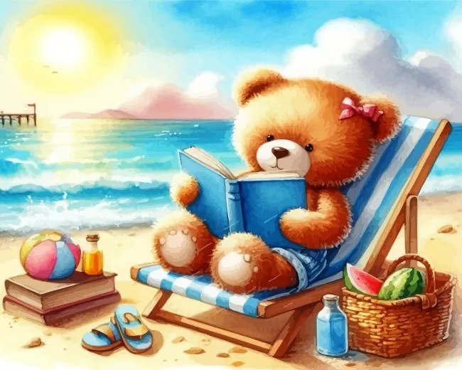 Teddy Bear Enjoying His Vacation Diamond Painting
